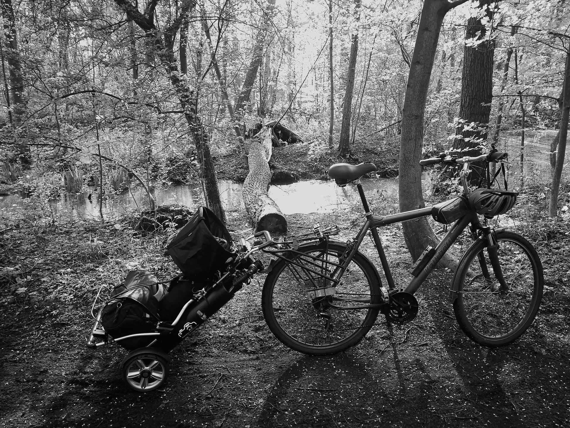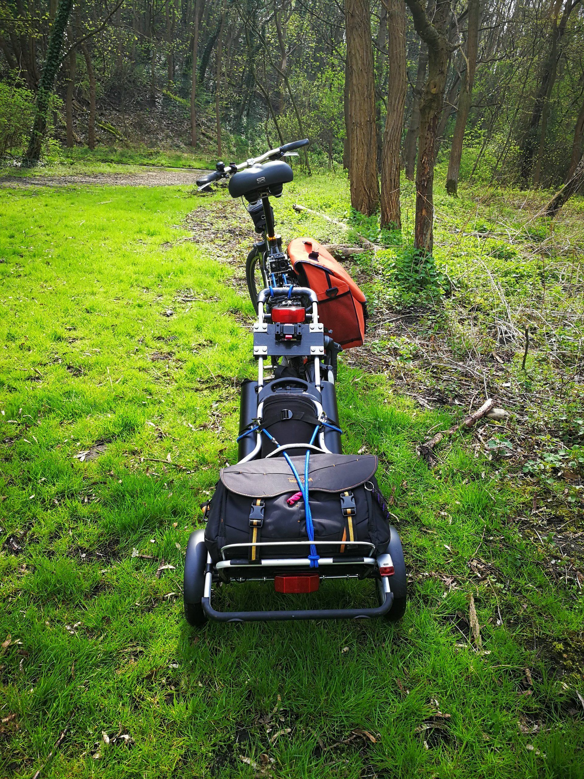 Leider zeigte sich die erste Idee 2016 nach einigen Monaten als unpraktisch da man den Hänger immer nur mit dem Fahrrad nutzen konnte hier ein altes Bild